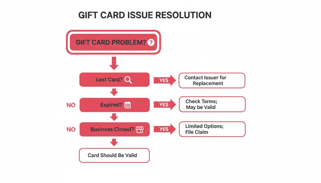This flowchart provides a simple decision tree for what to do if you run into common gift card problems.