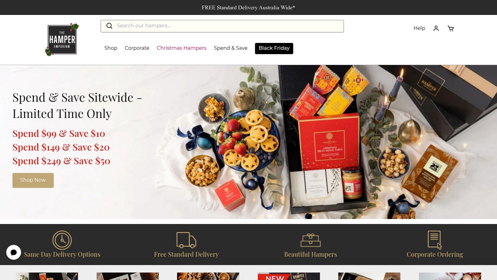 | The Hamper Emporium | Low–Moderate — curated hampers with limited customisation | Free standard Australia?wide; same?day express in Sydney; premium presentation | High presentation value; reliable nationwide delivery | Elegant keepsake or pamper hampers, remote gifting | Premium packaging, nationwide free delivery, personalised options |