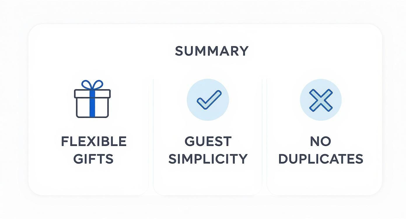 As you can see, the whole system is designed to make life easier for everyone while making sure every single gift feels intentional and is truly wanted.