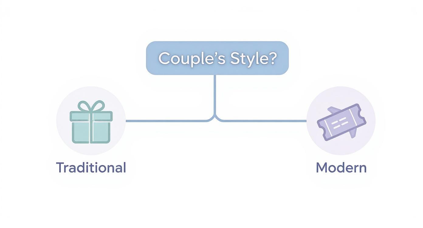 It’s a simple way to visualise the two main paths for gifting today. A couple's lifestyle can quickly point you towards either a classic physical present or a more contemporary choice like an experience or cash fund.