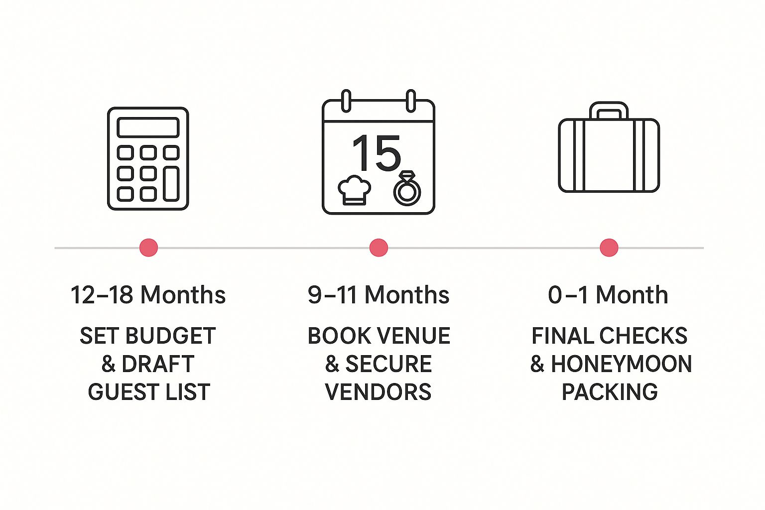 As you can see, the early months are all about locking in the big, non-negotiable things. The finer details and personal touches come into play much closer to the date.