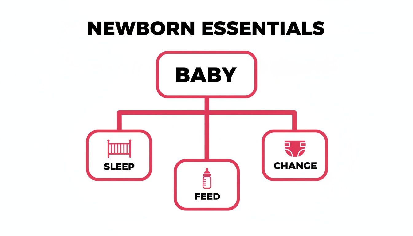 This handy diagram breaks it all down into the three simplest categories: sleep, feeding, and changing.