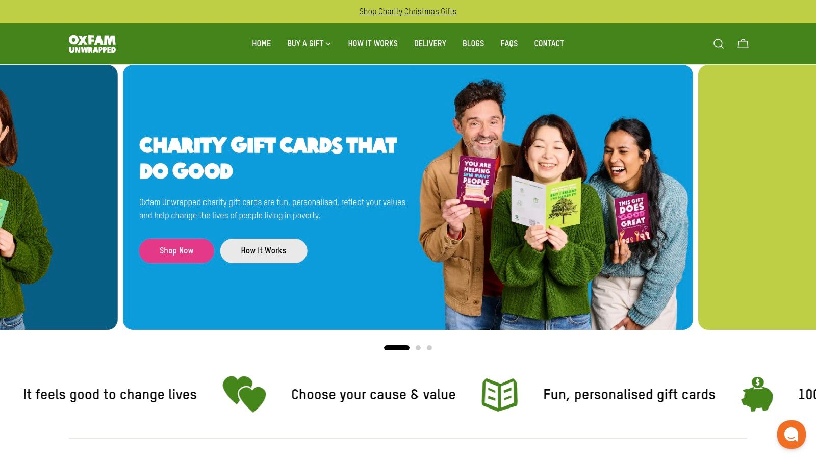 | Selection | A wide range of themed charity gifts, from farm animals to clean water projects. |